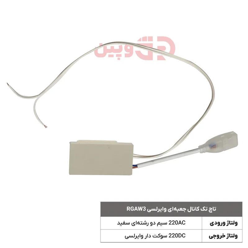 تاچ تک کانال جعبهای یک سنسور 220 ولت است که مناسب برای نورپردازی آینههای بکلایت میباشد. طراحی این محصول به گونهای است که قسمت تاچ و پاور در یک برد تجمیع شده و در داخل جعبه جانمایی گردیدهاست. این سنسور در ۳ مدل وایرلسی (RGAW3) ، سوکتدار(RGAS3) و ساده(RGA3) میباشد.